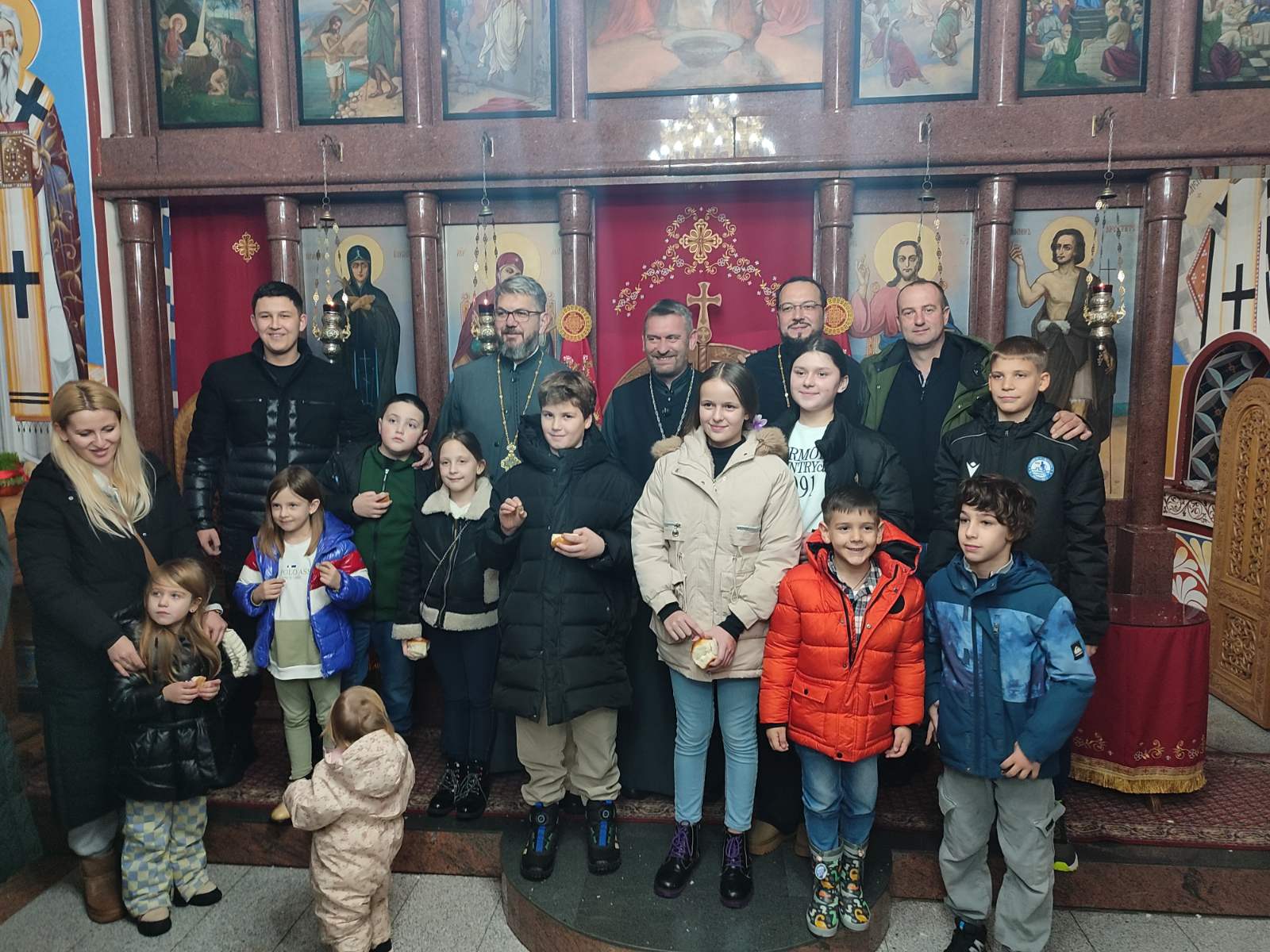 Црква Свете Петке била је премала да прими све заинтересоване вјернике, посебно малишане, који су присуствовали свечаном ломљењу божићне чеснице. У овом храму ломљене су три чеснице, а дванаесторо дјеце добило је златник или сребрењак, с обзиром на то да се у свакој чесници налазио по један златник и три сребрењака.