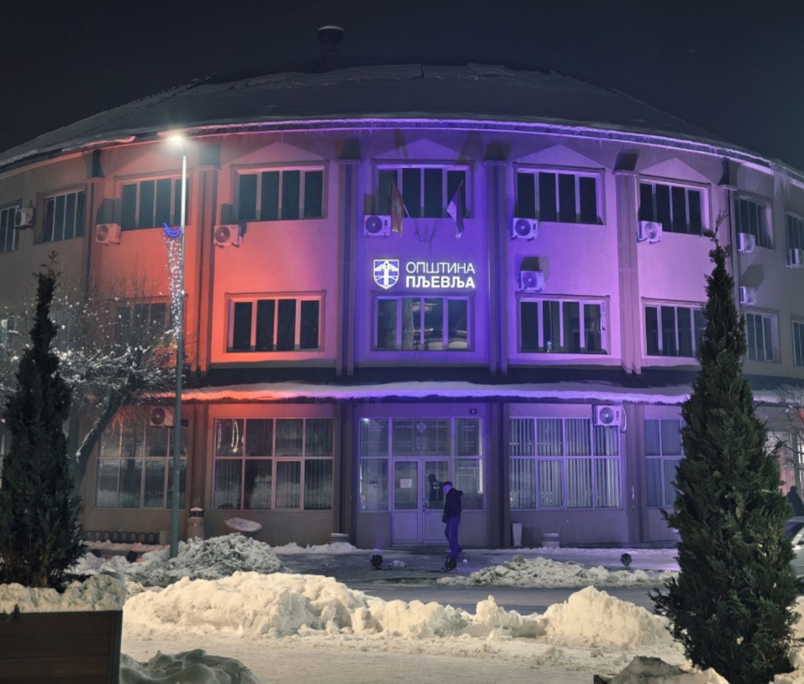 У оквиру дочека Нове православне године, вечерас је сједиште Општине Пљевља освјетљено у бојама српске тробојке.