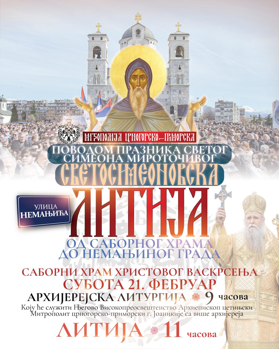 Након Литургије, у 11 часова, улицама Подгорице, од Саборног храма до Немањиног града, до ушћа Рибнице у Морачу, кренуће традиционална Светосимеоновска литија.